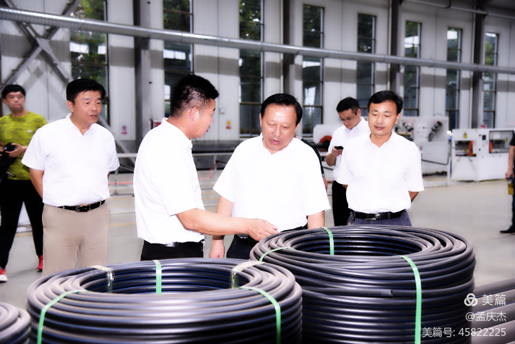 9月16日,市政協副主席、民主建國會濟寧市委主委李克學,民建市委秘書長劉訓闊等蒞臨山東聚合管業公司視察會員企業“六穩”“六保”工作開展情況。公司董事長馮學勤介紹公司當年投資、當年生產并當年交稅情況。民建市中支部主委付大波、任城支部主委鄭長建陪同視察。
